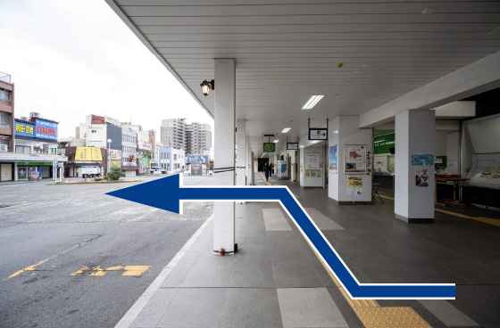改札を出たらロータリーに沿って右手に進んでください。