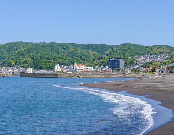 伊東オレンジビーチは白砂が美しい海岸で、夏は海水浴や花火大会が楽しめます。